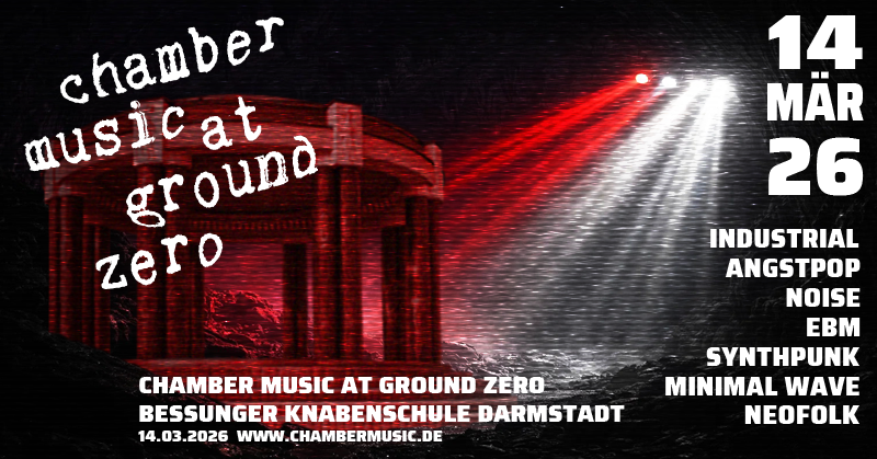 Wir widmen uns der Förderung elektronischer und experimenteller Musik aus dem Bereich der Industrial Culture. Dazu veranstalten wir Konzerte sowie regelmäßige "chamber music at ground zero"-Parties und betreiben das Label "Chamber Music Records".